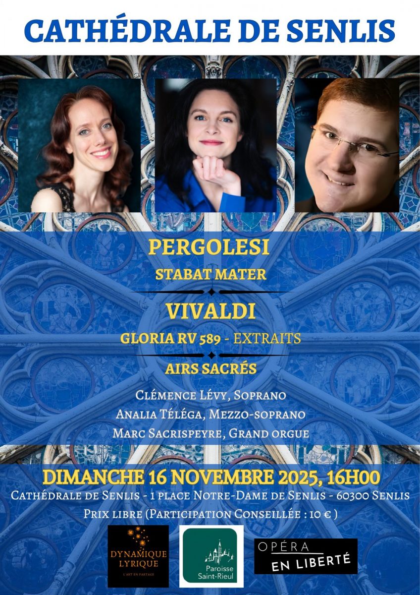 Le 16 novembre 2025, un concert de musiques sacrées aura lieu à la cathédrale de Senlis à 16h.