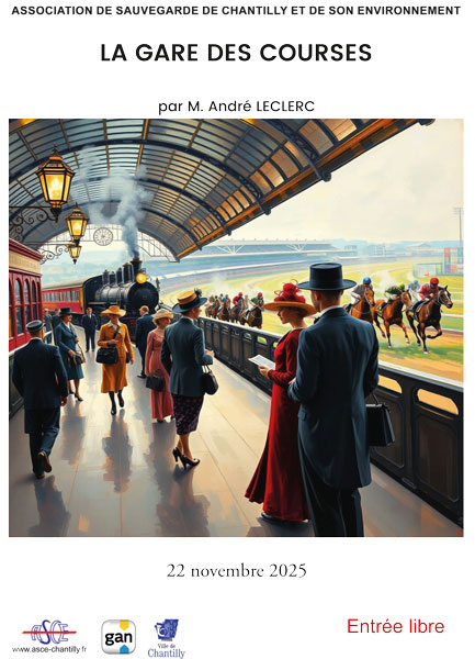 L'Association de Sauvegarde de Chantilly et de son Environnement vous propose une conférence passionnante qui redonnera vie à la gare des courses de Chantilly.
