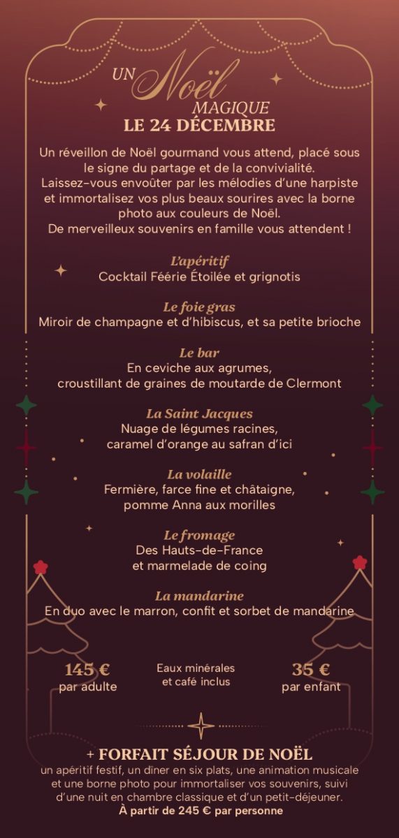 Un réveillon de Noël gourmand vous attend, placé sous le signe du partage et de la convivialité.