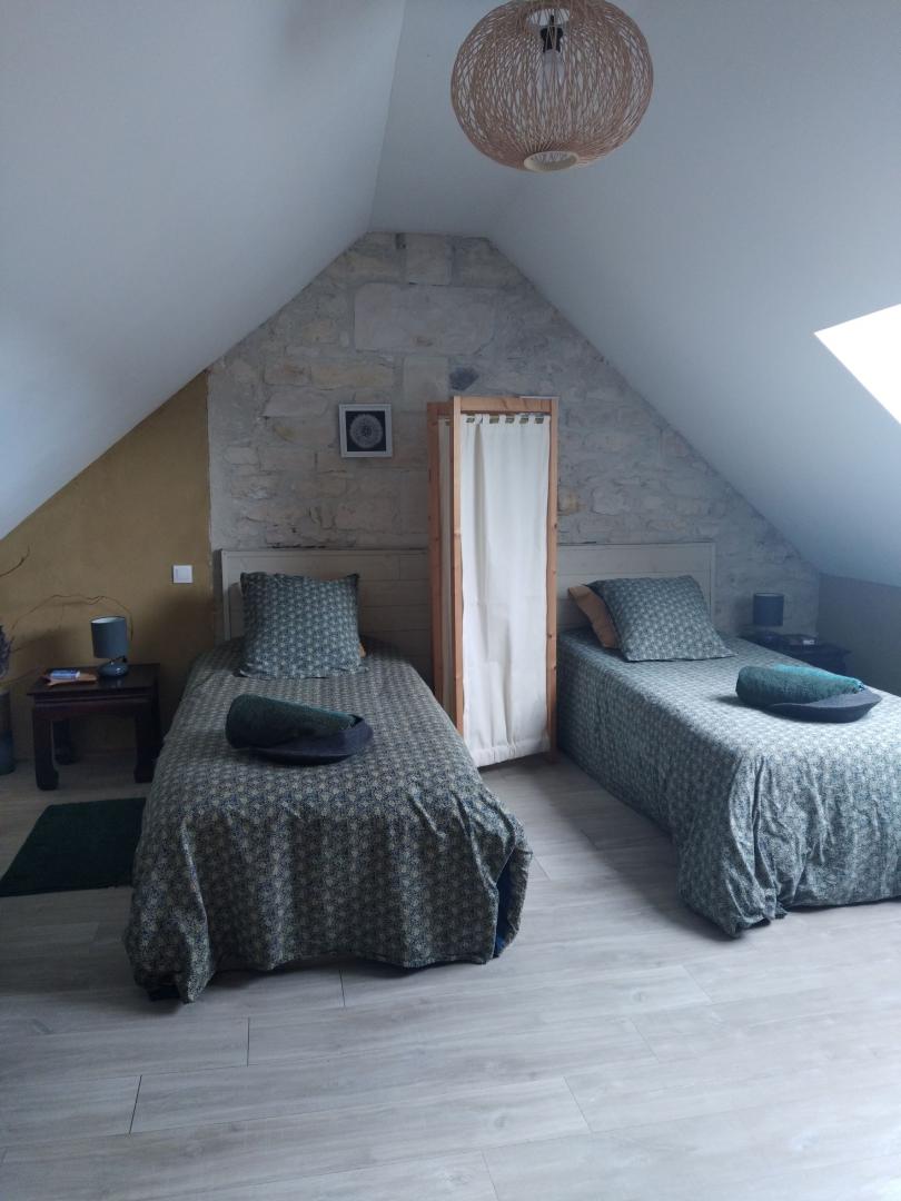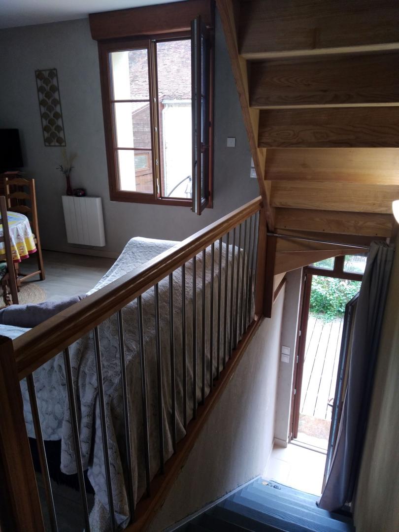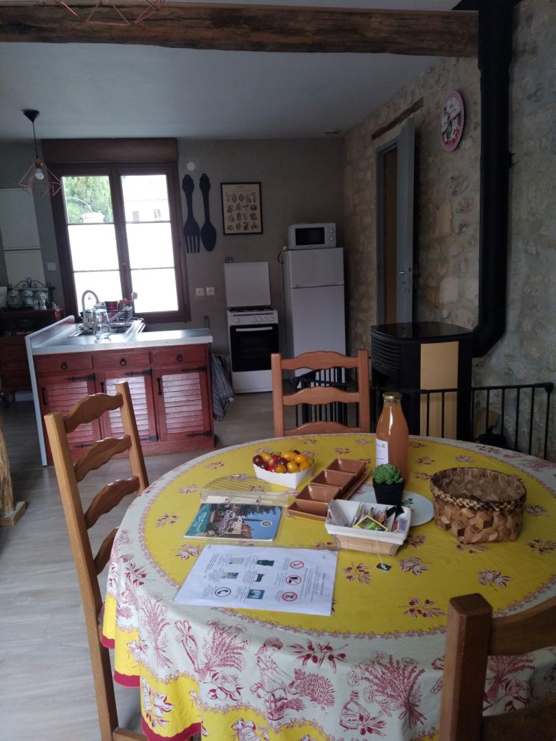 Gîte plein de charme et de caractère de 46 m², aménagé sur deux ou trois niveaux selon l'entrée que vous choisissez. Côté rue : Accédez directement à la pièce de vie. Côté cour : Commencez votre visite au rez-de-chaussée, puis empruntez l'escalier qui vous mènera à l'espace de vie principal. À l'intérieur vous trouverez une pièce de vie avec une cuisine ouverte sur le séjour, équipé d'un poêle à bois (bois fourni) et d'un canapé convertible, salle d'eau avec WC. À l'étage : une grande chambre modulable pour deux personnes (1 lit double ou 2 lits simples). Un second salon / bureau a été aménagé sur la palier pour votre confort. Buanderie : Équipée d'un lave-linge et d'un sèche-linge, accessible depuis la cour au rez-de-chaussée. Profitez d'une cour privative, d'un jardin entièrement clôturé et d'une terrasse avec salon de jardin. Parking disponible dans la cour. WIFI Pour votre confort, les lits sont faits à votre arrivée, et le linge de toilette et de maison est fourni.