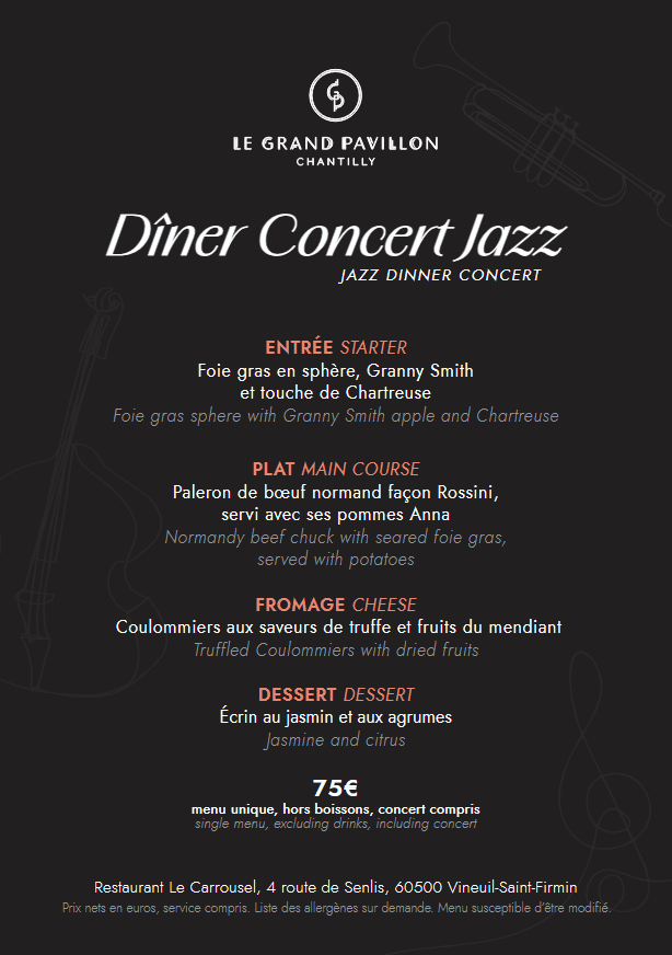 Jazz Dinner Evening at the Carroussel du Grand Pavillon