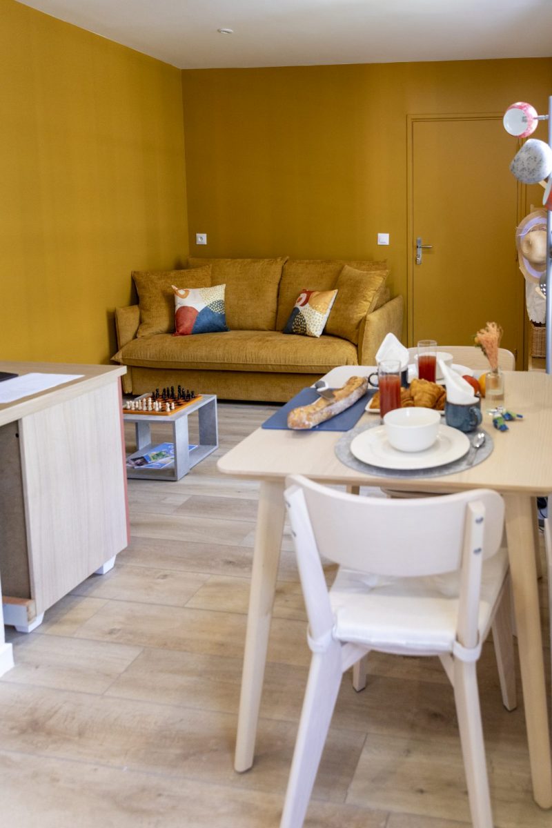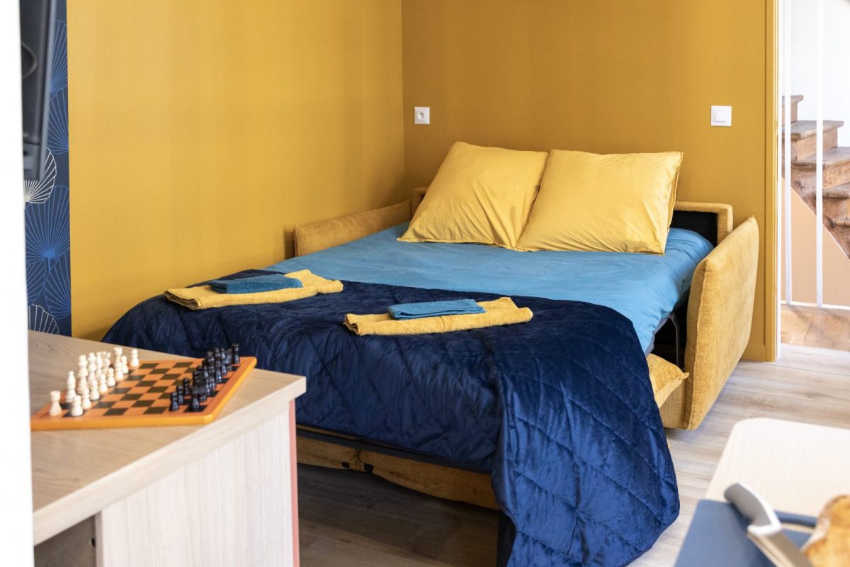 Carine and Paul welcome you to their warm and comfortable gite, designed to make you feel right at home! Set up on the first floor of a stone house and decorated by an interior designer, this warmly-coloured studio offers everything you need for a pleasant stay: a sofa bed with high-quality memory foam bedding for a cosy stay, a fully-equipped kitchen, a private shower room, a study area. Beds are made, towels are provided and welcome products await you for a little pampering on your arrival!