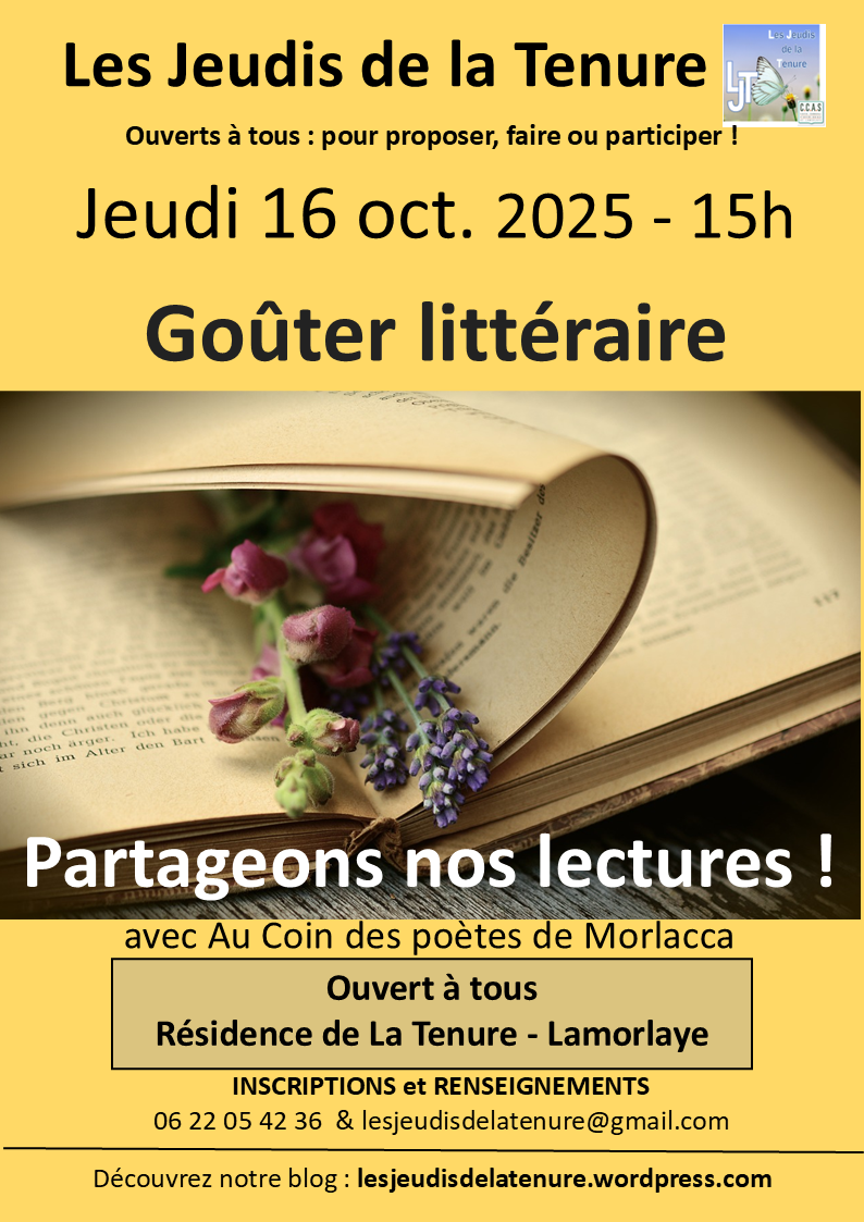 Pour lancer la réunion, Claire, Claudine, Hervé, Lucienne vous parlerons de leurs dernières lectures et chacun dans le public pourra aussi parler de ses lectures ! Un moment convivial et sans autre prétention que de partager ce que la lecture d'un livre peut nous apporter et de donner envie aux présents de, peut-être, le lire aussi.