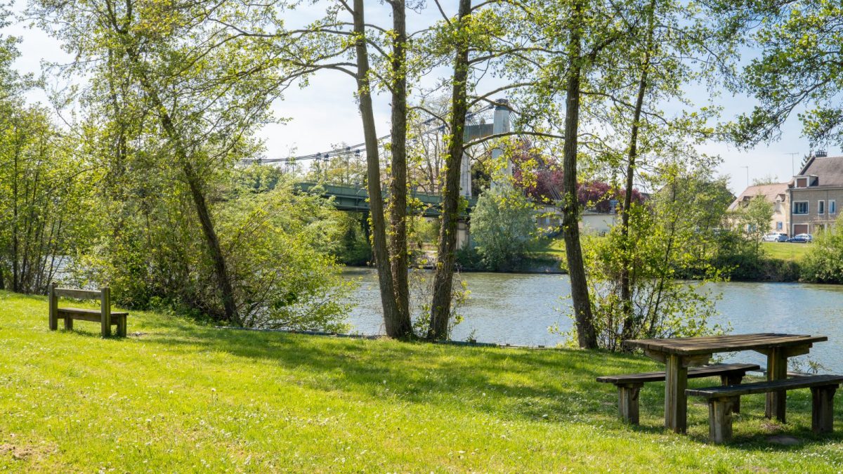 Área de picnic en la aldea de Pont de Saint-Leu. Instalaciones: 2 mesas de picnic, aparcamiento y papeleras.