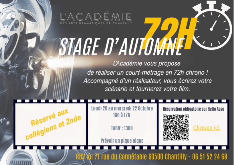 Trainingscursus aan de Académie des Arts Dramatiques de Chantilly: "72H chrono ados" (tienertijd van 72 uur)